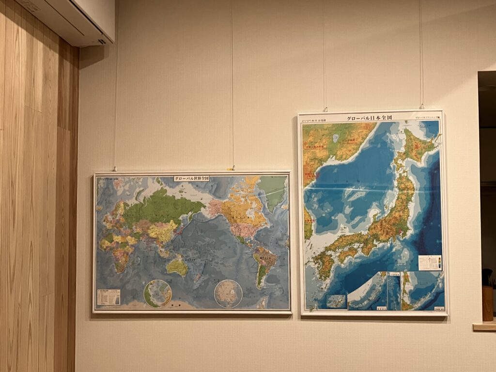 その一つが、日本地図と世界地図を壁に掲げたことです。