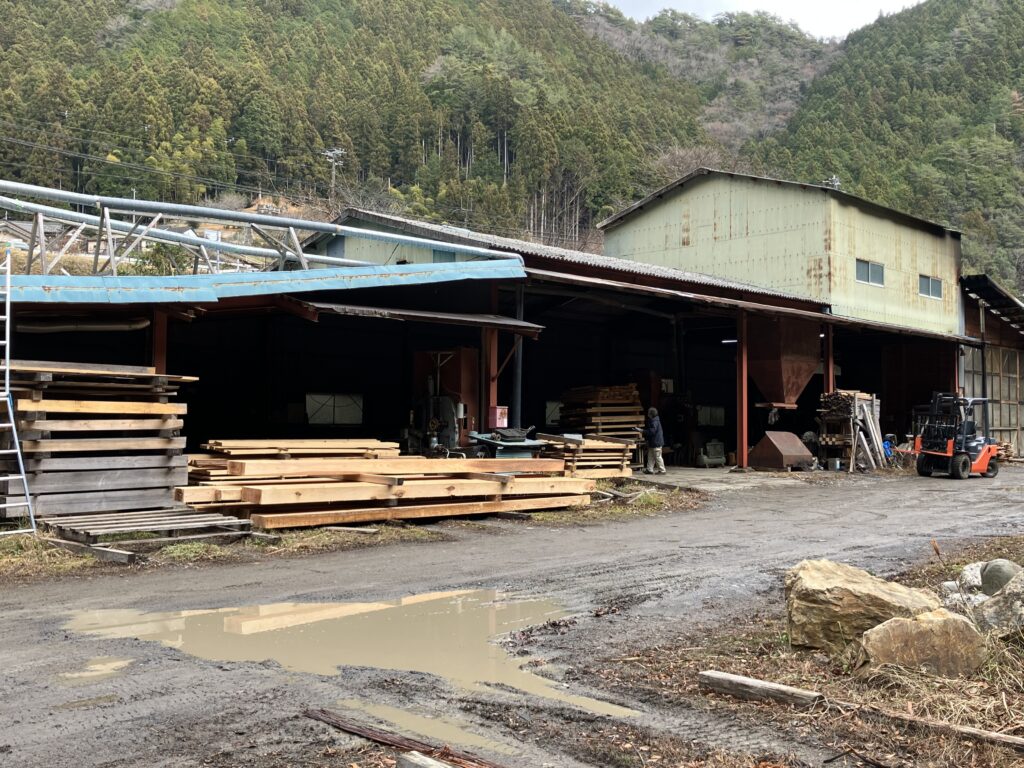 こちらは自然の風合いと厚みのあるヒノキを選びました。どちらも熊野産の木材です。この看板用の材木は、地元の製材所に足を運び、自分の目で見て選びました。
